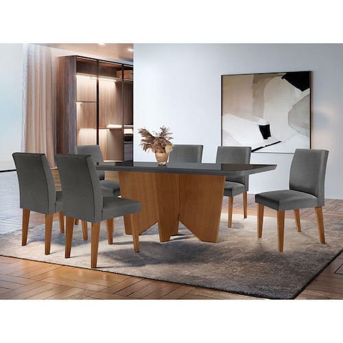 Para trazer mais beleza, conforto e sofisticação à sua sala de jantar ou cozinha, a escolha perfeita é o Conjunto Évora com 6 cadeiras Grécia