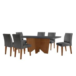 Sala de Jantar Mesa Evora 180 Mdf Vidro Canto Copo com 6 Cadeiras Grecia Rufato - Grafite