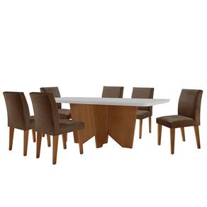 Sala de Jantar Mesa Evora 180cm MDF Canto Copo com 6 Cadeiras Grécia Rufato - Marrom