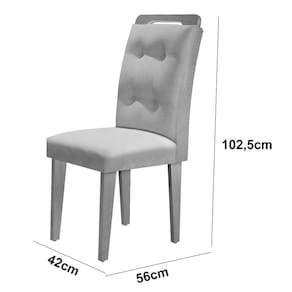 Com espaço ideal para dispor as melhores receitas e recepcionar a sua família, a sala de jantar Olímpia com cadeiras Carol é um móvel completo em todos os sentidos. O conjunto é compacto, possui sua estrutura em MDF e acabamento em pintura UV, que proporcionam melhor durabilidade ao produto. As cadeiras tem um designer sofisticado, misturando o moderno e o clássico com seu encosto em detalhes de botões, trazendo conforto e elegância para seu lar. Possui puxador na parte superior do encosto para facilitar a movimentação e evitar o toque ao tecido.