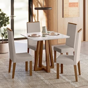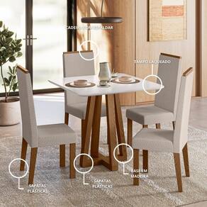 Conjunto Sala de Jantar Livia Piccola Quadrada 90x90 com Tampo Laqueado e 4 Cadeiras Livia Elegância e Conforto para o Seu Lar