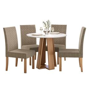 Conjunto Sala de Jantar Mesa Estilo 900 Redonda com Tampo Laqueado Brilho e 4 Cadeiras Elegance Semplice Design Sofisticado e Conforto para Todos os Estilos