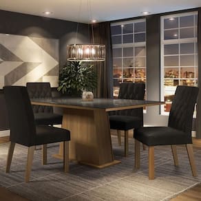 Esperando o que para dar uma cara nova à sua sala de jantar? Conheça o Conjunto de Mesa e Cadeiras Aryeli da Madesa!