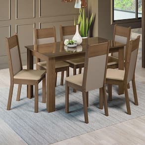 COR: Marrom | Garantia: 3 meses contra defeitos de fabricação | Dimensões - Altura: 76,5 cm | Dimensões - Largura: 136 cm | Dimensões - Profundidade: 75 cm | Peso aproximado: 66 kg | Quantidade de Lugares: 6 lugares | Produto: Conjunto Sala de Jantar | Marca: Madesa | RBN: Casa/Móveis/Móveis para Sala de Jantar/Conjuntos para Sala de Jantar | Material: MDP/MDF | Material para Filtro: MDP/MDF | Estado de Origem: RS | Conteúdo da embalagem: 1 Conjunto de Jantar | Instruções/Cuidados: Utilize um pano limpo, levemente umedecido e seque em seguida a superfície. Não usar produtos químicos ou abrasivos para a limpeza. Recomendamos polir seu móvel com lustra-móveis duas a três vezes por ano. | Nome do Simples no Fornecedor: Conjunto Sala de Jantar Mesa Tampo de Vidro 6 Cadeiras Rustic/Crema/Bege Zoe Madesa | Produto precisa de Montagem?: Sim | Descrição do Tamanho: 76,5 cm x 136 cm x 75 cm | Largura Produto Com Embalagem (cm): 78 | Altura do Produto com Embalagem (cm): 44.6 | Peso Produto Com Embalagem (Kg): 66,4 | Fabricante: Madesa | Contato do Fabricante: contato@madesa.com | Formato da Mesa: Retangular | Comprimento do Produto com Embalagem (cm): 154,8 Cor: Rustic/Crema/Bege