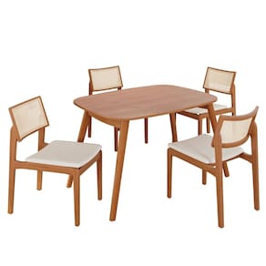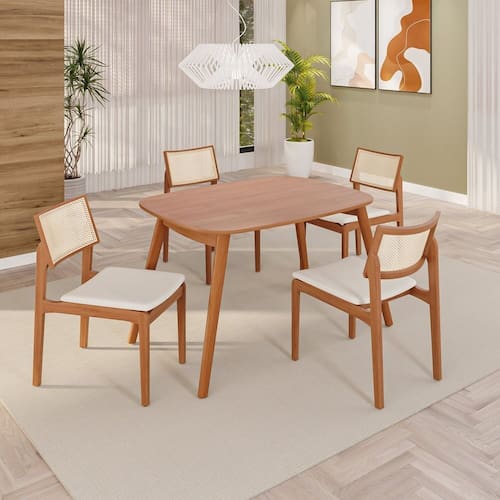 Sala de Jantar Mesa Tampo Laminado 110x76cm com 4 Cadeiras em Linho Ceci Yescasa Naturalíssimo - Marrom