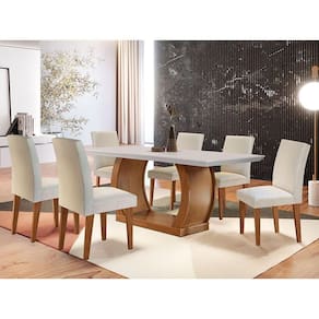 Sala De Jantar Milena 6 Cadeiras Grécia Rufato Veludo Creme Imbuia