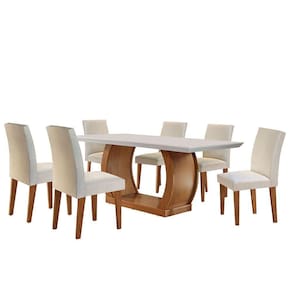 Sala De Jantar Milena 6 Cadeiras Grécia Rufato Veludo Creme Imbuia - Marrom