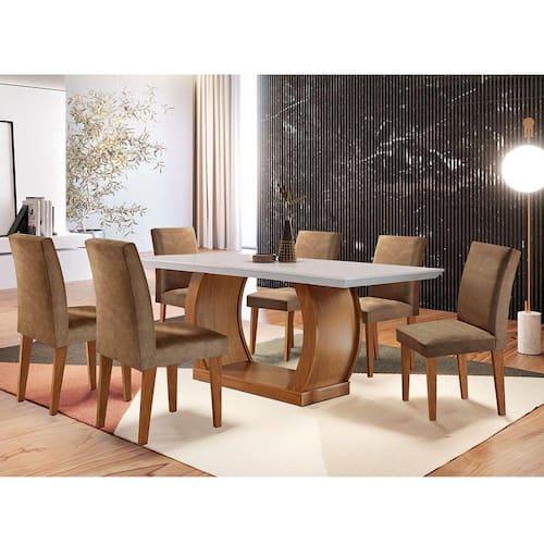 Sutileza é a palavra que define esse Sala de Jantar Milena Rufato. A mesa encanta com o requinte dos detalhes, garantindo um perfeito equilíbrio estético com as linhas curvas e retas.