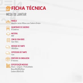 Sala de Jantar Milena 6 cadeiras Grécia Rufato - Off White