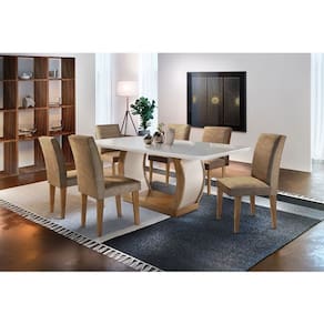 Sala de Jantar Milena Tampo MDF Vidro com 6 Cadeiras Grécia QR Rufato