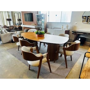 Sala de Jantar Tampo Orgânico com 8 Cadeiras 2,20x1,10m - Florença - Art Salas A Mesa de jantar Florença é um móvel ideal para sua casa, com design moderno, diferenciado e elegante, que vai agregar a sua decoração tornando sua sala de jantar mais aconchegante! Ela tem a base diferenciada com detalhes ripados, fabricada em MDF laminado, ecologicamente correta, o tampo também em MDF laminado em formato orgânico, que é super tendência, e quinas arredondadas que evitam os impactos físicos. Junto das cadeiras Florença, que são a perfeição em produto e simplesmente indispensáveis, né? São uma necessidade. Ainda mais se você adora recepcionar amigos, convidados e familiares na sua casa. Sua sala de jantar ficará muito mais convidativa. Sua estrutura confere sofisticação ao cômodo e é uma ótima pedida para soltar a criatividade e fazer combinações diversas. Fabricada em madeira maciça, ela possui assento e encosto estofado com espuma D-23 e braços proporcionando muito conforto e elegância. A escolha é toda sua! Aproveite! Fazem parte do anúncio 1 Mesa de Jantar Florença 2,2x1,10m 8 Cadeiras Florença Obs. Objetos de decoração não inclusos. Particularidades da Sala de Jantar Características da Mesa: - Fabricada MDF laminado; - Tampo em formato orgânico - Base diferenciada com detalhes ripados; - Quinas arredondadas; Características da Cadeira: - Estrutura em Madeira Maciça Tauari; - Encosto e assento estofados; - Espuma com Densidade D-23; - Design moderno, sofisticado e diferenciado; - Madeira Ecologicamente Correta; - Baseado em conceitos sustentáveis; - Madeira altamente resistente; - Suporta até 150 kg distribuídos; Dimensões da Mesa: Altura: 80 centímetros Largura: 2,20 metros Profundidade: 1,10 metro Dimensões da Cadeira: Altura: 82 centímetros Largura: 60 centímetros Profundidade: 58 centímetros Informações Importantes: - Produtos podem apresentar diferenças de tonalidades entre a foto na tela e o produto real, devido a calibração de cor de tela. - Limpar com flanela ou pano macio. Não utilizar álcool. Não utilizar produtos abrasivos ou corrosivos. - Nós prezamos pela qualidade da entrega em primeiro lugar, trabalhamos com transportadoras altamente selecionadas e os melhores materiais de embalagem. - Todos os itens já vão embalados, a mesa vai semi montada e as cadeiras 100% montadas. Não necessita da montagem de um profissional, ficando ao critério do cliente. Não nos responsabilizamos pela montagem. - Objetos de decoração não incluso. - Certifique-se de que o produto caiba em elevadores e vãos de escadas, não fazemos içamentos ou desmontagens de produtos. Quaisquer despesas deste tipo ficam a cargo do cliente. - Garantia de 3 meses contra defeitos de fabricação.