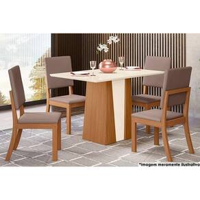 Sala de Jantar Completa Orus Tampo Madeirado c/ Vidro 120x80cm e 4 Cadeiras Milla Nature/Marrom Amêndoa - Henn