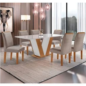 A mesa de jantar retangular é segura? Claro, segura e Plus 18mm com vidro serigrafado 04mmAcabamento: Impressão UVQuantidade de cadeiras: 6 CadeirasPés Cadeira: 25mm MDFAssento: Espuma de D23Encosto: Espuma D20Peso suportado por cadeira: 120 Kg