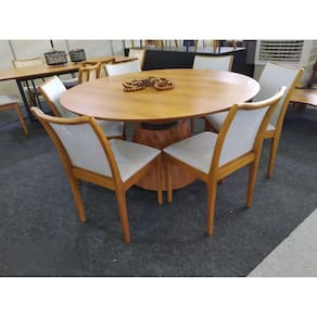 Sala de Jantar Laminada Redonda 6 Cadeiras 1,35m - Phoenix - Requinte Salas A Mesa Piemonte é a pedida certa para você deixar sua casa mais moderna. Com sua base cõnica robusta e tampo em MDF laminado, essa mesa junta resistência e durabilidade com elegância. As cadeiras Phoenix possuem um design moderno e um acabamento incrivél, que vai trazer ao seu ambiente um ar sofisticado e elegante! As cadeiras tem a estrutura em madeira maciça tauari, madeira ecologicamente correta, e o seu encosto estofado. Quanto a durabilidade, esse modelo não deixa nada a desejar, o seu assento é fabricado com espuma de densidade D-26, muito confortável, e as cadeiras suportam ate 150Kg distribuídos. Se você procura uma cadeira elegante e moderna, esse modelo é perfeito!! Por se tratar de madeira maciça, nossa fabricação é toda manual, o que confere ao produto um acabamento impecável. Isso garante a beleza do produto e o conforto. Cada peça é cuidadosamente selecionada e trabalhada para criar uma obra de arte única. Devido à fabricação manual, o tempo solicitado é um pouco maior do que o convencional por isso pedimos um tempo um pouco maior do que os demais produtos. No entanto, garantimos que o resultado vale a pena. Aproveite! Não perca tempo e compre logo a sua sala de jantar. Fazem parte do anúncio 1 Mesa de Jantar Piemonte 1,35m 6 Cadeiras Phoenix Estofada Obs. Objetos de decoração não inclusos. Particularidades da Sala de Jantar Características da Mesa: - Base cônica em MDF laminado; - Tampo em MDF laminado; - Tampo redondo; - Design moderno - Madeira ecologicamente correta. Particularidades da Cadeira: Características: - Fabricada em madeira maciça tauari seca em estufa; - Madeira imunizada; - Espuma D-26 no assento; - Estrutura reforçada; - Ecologicamente correta; - Peso suportado 150kg; Dimensões da Mesa: Altura: 79 centímetros Diâmetro: 1,35 metros Dimensões da Cadeira: Altura: 89 centímetros Largura: 49 centímetros Profundidade: 45 centímetros Informações Importantes: - Produtos podem apresentar diferenças de tonalidades entre a foto na tela e o produto real, devido a calibração de cor de tela. - Limpar com flanela ou pano macio. Não utilizar álcool. Não utilizar produtos abrasivos ou corrosivos. - Nós prezamos pela qualidade da entrega em primeiro lugar, trabalhamos com transportadoras altamente selecionadas e os melhores materiais de embalagem. - As cadeiras vão montadas nas caixas e embaladas. Necessário fixar o assento e o encosto e parafusar, não necessita da montagem de um profissional. A mesa vai semi montada, necessário fixar o tampo a base. - Objetos de decoração não incluso. - Certifique-se de que o produto caiba em elevadores e vãos de escadas, não fazemos içamentos ou desmontagens de produtos. Quaisquer despesas deste tipo ficam a cargo do cliente. - Garantia de 3 meses contra defeitos de fabricação. Marca: Requinte Salas