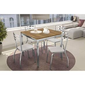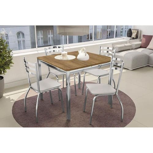 Sala de Jantar Completa Reno c/ Tampo de Madeira 90cm + 4 Cadeiras Portugal Cromada/Branco 106 - Kappesberg