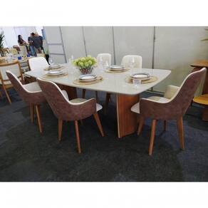 A Mesa River é a pedida certa para você deixar sua casa mais moderna. Com sua base elegante e tampo em MDF laqueado com vidro, essa mesa junta resistência e durabilidade com elegância. A Cadeira Lírio é a junção de beleza, elegância e modernidade. Seu assento curvo faz com que você se sinta abraçado quando senta, deixando você extremamente confortável e relaxado. A base de madeira maciça traz um sustento e uma resistência a mais para a cadeira. As suas refeições merecem esse momento, não é mesmo? Confira e aproveite! Por se tratar de madeira maciça, nossa fabricação é toda manual, o que confere ao produto um acabamento impecável. Isso garante a beleza do produto e o conforto. Cada peça é cuidadosamente selecionada e trabalhada para criar uma obra de arte única. Devido à fabricação manual, o tempo solicitado é um pouco maior do que o convencional por isso pedimos um tempo um pouco maior do que os demais produtos. No entanto, garantimos que o resultado vale a pena. Aproveite! Não perca tempo e compre logo a sua sala de jantar.