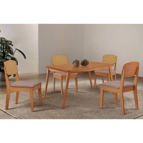 Sala Jantar Mesa Havana Tampo Curvo 120cm+4 Cadeiras Havana Naturale - Linho Capuccino - Rufato