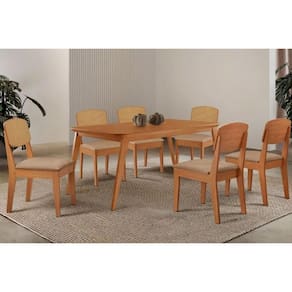 Sala Jantar Mesa Havana Tampo Curvo 180cm+6 Cadeiras Havana Naturale - Linho Bege - Rufato