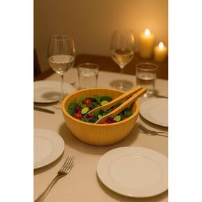 Transforme suas refeições em momentos especiais com a saladeira de bambu com pegador. Feita 100% em bambu ela combina resistência, leveza e um visual natural que valoriza qualquer mesa. Ideal para servir saladas frescas, massas leves e até frutas de forma prática e elegante.