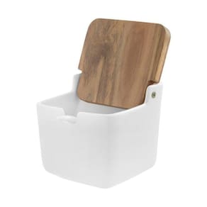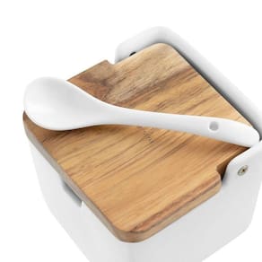 O sal tem papel fundamental no sabor da comida que preparamos em casa! Para dispor sempre da quantidade necessária, conte com o Saleiro com Colher Acácia Linn. Com estrutura em cerâmica e tampa em madeira acácia, ele confere um visual clean à cozinha e torna prático o ato de cozinhar.