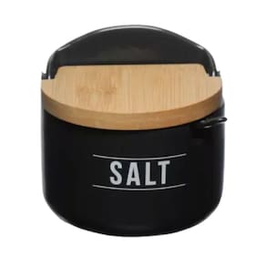 Saleiro de Cozinha de Porcelana Manhattan Hauskraft 300ml Preto com Tampa de Bambu e Colher