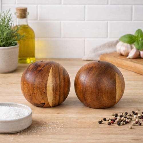 Descrição do Produto Traga charme natural e praticidade para a sua mesa com o saleiro e pimenteiro em madeira de acácia. Com design compacto de 6,2 × 7 cm, este conjunto combina funcionalidade com um visual moderno e acolhedor. A acácia oferece textura rica, resistência superior e um acabamento sofisticado que valoriza qualquer ambiente — da cozinha ao jantar especial. Perfeito para o uso diário, o conjunto garante fácil manuseio e preserva temperos com estilo, deixando sua mesa mais organizada e elegante. Diferenciais: