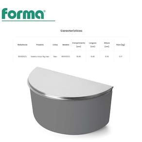 Características: Material: Aço inox (tampa), Plástico (corpo do saleiro) Cor: Cinza Capacidade: 1 kg Dimensões: 18,4 x 9,4 x 9(a) cm Fabricante: Forma Inox Linha: Neo