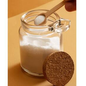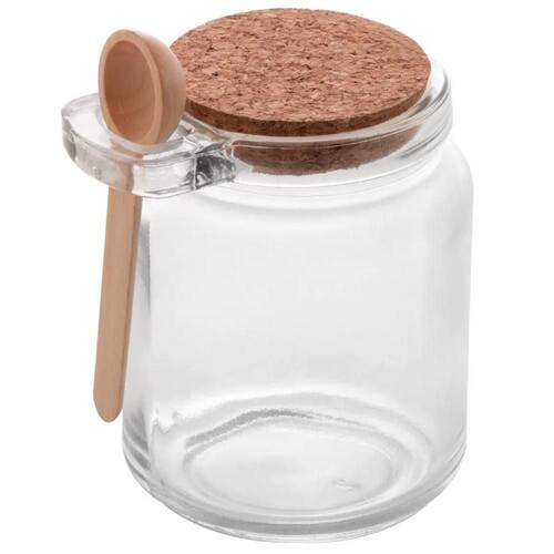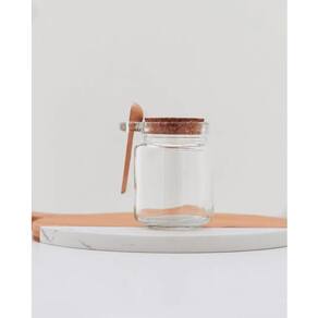 Saleiro Porta Tempero de Vidro com Tampa de Rolha 240ml Colher de Bambu Lyor