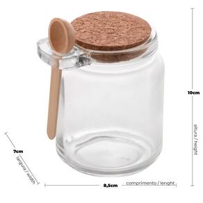 Este pote de vidro para tempero com tampa de rolha e colher dosadora de bambu da Lyor é a escolha ideal para quem deseja unir funcionalidade e estilo em único utensílio! Com capacidade de 240ml, produzido em vidro borossilicato e com tampa em rolha cortiça, este saleiro porta tempero possui um design moderno e proporciona um charme a mais ao ambiente onde for inserido. Seu aspecto é natural e elegante e você ainda garante a versatilidade de um item funcional e decorativo!