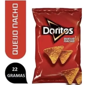 Salgadinho de milho Doritos sabor Queijo Nacho com 22 gramas cada. Kit contendo 10 unidades. Contém aromatizante. Colorido artificialmente. Contém milho transgênico. Peso líquido total 220 gramas.