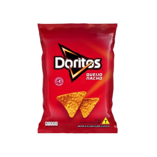 Salgadinho de milho Doritos sabor queijo nacho com 210 gramas cada. Kit com 2 unidades. Peso líquido 420 gramas.