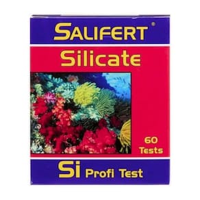 Com o teste de silicato salifert profi é possível determinar o teor de silicato na água do mar ou água doce com exatidão e facilidade. Silicato ocorre especialmente em água corrente ou em água purificada, quando a unidade de ro ou di não está funcionando corretamente. Silicato não só resulta em diatomáceas, mas pode também bloquear alguns oligoelementos essenciais, tais como vanádio e molibdênio. Para água doce, não usar água da torneira ou água de osmose com conteúdo silicato de mais de 2 mg/l.