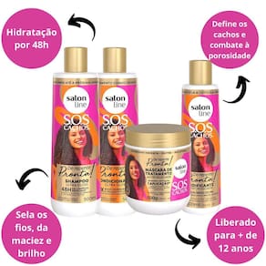 O Shampoo proporciona limpeza profunda e hidratação por até 48h, definindo cachos e combatendo a porosidade. O Condicionador da desembaraço 8x mais eficaz, sela os fios, garante maciez e brilho, e combate pontas duplas. A Máscara nutre intensamente e restaura a fibra capilar, ideal para cronograma capilar. Regenera os fios em uma aplicação, proporcionando maciez e brilho ultra gloss. O Acidificante equilibra o pH da fibra capilar, sela as cutículas, repara os fios, fortalece, controla o frizz, da maciez e brilho. Indicado para cabelos cacheados, crespos, porosos e sem brilho. Sem testes em animais. Para maiores de 12 anos.