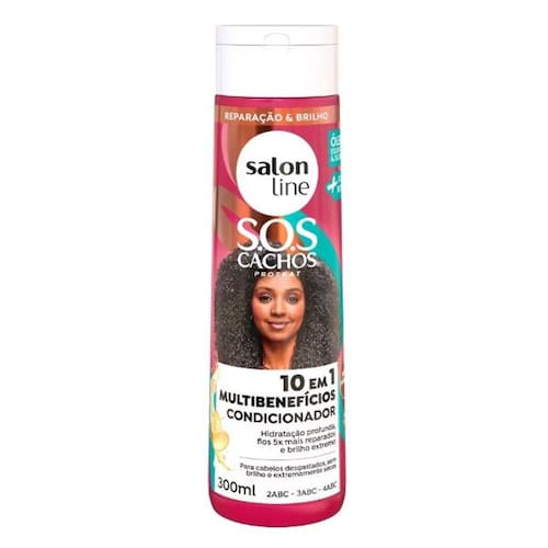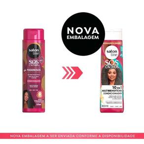 O Condicionador SOS Cachos 10 em 1 Multibenefícios 300ml traz hidratação profunda, fios 5x mais reparados e brilho extremo aos seus cabelos