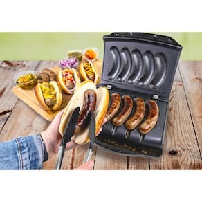 Grelha elétrica para salsichas Homecraft Nostalgia, capacidade para 5 unidades, 1200W, superfície antiaderente com bandeja de gotejamento.Vendido e entregue por nocnoc
