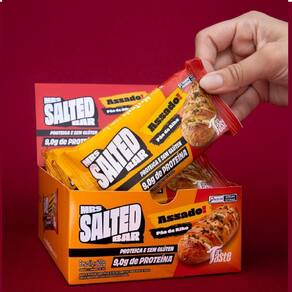 Mrs salted bar é uma barrinha de proteína salgada e assada ela é sem glúten e conta com 9g de proteínas por barra.