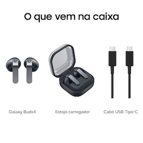 Com um novo design refinado em metal, o novo Galaxy Buds4 entrega sofisticação desde o primeiro toque, a identidade visual foi aprimorada e a estrutura alongada de lâmina mantida, garantindo encaixe confortável e controle estável para uso prolongado. Pela primeira vez em um Galaxy Buds de tipo aberto o Modo Ambiente está presente, mantendo o usuário conectado ao que acontece ao seu redor.
