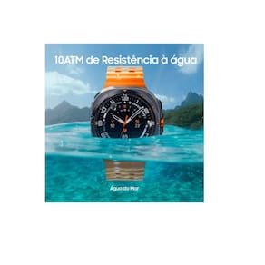 Construído para ultrapassar os limites, o Galaxy Watch Ultra resiste a até 55 C de calor, 9.000 m de altitude e 10 ATM de pressão da água, suportando tudo isso sem problemas com sua nova estrutura em titânio aeroespacial e vidro em cristal de safira. O novo processador de 3nm potencializa sua rotina diária. Alterne rapidamente entre verificar o clima e monitorar seus treinos em um instante. Além disso, ele otimiza a vida útil da bateria para uma energia de longa duração, garantindo que o seu Galaxy Ultra acompanhe o seu ritmo. Seja escalando penhascos ou fazendo trilha por dias, ultrapasse os limites sem se preocupar com a recarga durando até 100 horas no modo Economia de energia. Fique à frente na sua jornada de bem-estar com o nosso sensor de saúde mais avançado no Galaxy Watch. Com 13 LEDs, o novo BioActive Sensor monitora sua frequência cardíaca, padrões de sono e muito mais com alta precisão. Leve o seu treino para o próximo nível com o Galaxy Watch Ultra. Crie sua rotina de exercícios perfeita com aquecimentos, relaxamentos e intervalos, ou compita contra seus recordes anteriores para se manter motivado. Acompanhe seus treinos facilmente, debaixo do sol escaldante, com sua tela de 3.000 nits. Entenda melhor seu corpo e comece seu dia de forma mais inteligente com a Pontuação de Energia. Verifique seu sono, frequência cardíaca e atividades diárias e planeje sua rotina todos os dias. Não descansou tão bem? Talvez seja melhor pular a academia e relaxar em casa para voltar aos trilhos. Encontre o seu caminho com facilidade com o GPS mais preciso de todos os tempos no Galaxy Watch. O GPS de frequência dupla usa duas bandas de sinal de satélite (L1+L5), garantindo rastreamento preciso e consistente, mesmo em meio a densos blocos urbanos. Se suas mãos estiverem ocupadas e alguém ligar, basta pinçar seus dedos duas vezes para atender. Um simples gesto é tudo o que você precisa para tirar uma foto, atender uma chamada ou desligar um alarme. O sensor Analise de Impedância Bioelétrica (BIA) pode medir a composição do seu corpo, usando apenas as pontas dos dedos. Defina suas metas de peso, gordura corporal e massa muscular e personalize programas para atingir suas metas de saúde com precisão.