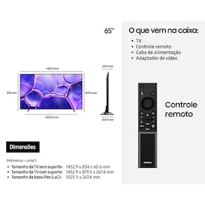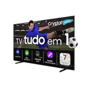 Processador Crystal 4K, HDR, Plataforma Tizen, Xbox Cloud Gaming, Samsung TV Plus, SmartThings, Q-Symphony, Som 3D, Ajuste automático de volume, Sensor de luminosidade.Tamanho da tela