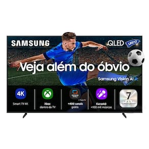 Samsung QEF1 55 Polegadas QLED 4K Vision AI, Leve seu entretenimento ao próximo nível. Com uma tela ampla de 55 polegadas, a QEF1 combina a excepcional qualidade de imagem dos painéis QLED com inteligência artificial de última geração, para oferecer uma experiência visual e sonora plena. Imagem de cinema com cores vivas: Equipada com o processador Q4 AI, esta TV aplica aprimoramentos inteligentes em tempo real, elevando qualquer conteúdo para quase qualidade 4K com HDR dinâmico. A tecnologia Quantum Dot proporciona volume de cor de 100, resultando em cenas mais vibrantes e realistas, validadas pela certificação PANTONE para precisão de cor. Som envolvente e adaptativo, O sistema de som inteligente ajusta automaticamente a reprodução para oferecer diálogos mais claros, graves equilibrados e efeitos imersivos mesmo em ambientes com ruído. Além disso, o Samsung Knox reforça a segurança e privacidade durante o uso conectado. Conexões modernas e navegação fluida: Compatível com HDMI eARC, Bluetooth 5.3, Wi-Fi 5, e com acesso a conteúdos ilimitados via Samsung TV Plus, SmartThings e Assistentes virtuais (como Alexa), a TV é um hub de entretenimento completo e integrado.