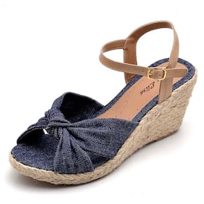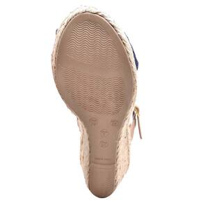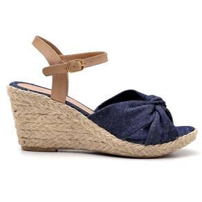 CARACTERÍSTICAS - Modelo: Sandália Anabela Couro - Gênero: Feminino - Cabedal: Couro atanado, detalhe em nó - Solado: Tipo anabela de material PU, extremamente leve, encapado com corda natural - Altura do salto: 7.0 a 9.0 cm - Palmilha: Espuma com forro em PU - Enfeite: Fivela dourada