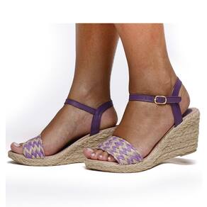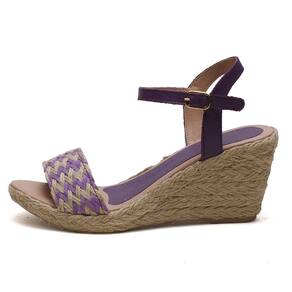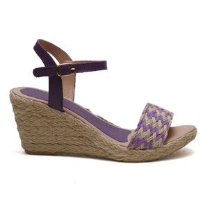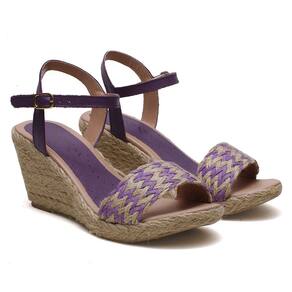 Sandália Anabela em Couro Feminino Fivela Detalhe Trança Sola Corda Confortável - 39 - Roxo