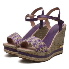 Sandália Anabela em Couro Feminino Fivela Detalhe Trançado Elegante - 35 - Roxo
