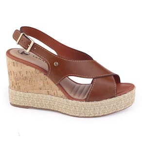 A sandália feminina Anabela da Tanara T6942 é um modelo confortável e que se destaca, ideal para o dia a dia. O cabedal é fabricado em material sintético, apresenta na parte frontal o formato de X composto por 2 tiras largas que dão suporte ao pé, juntamente com a palmilha macia do modelo é leve e confortável. O salto é alto anabelado, possui 9cm na parte traseira e 3cm na parte frontal, todo revestido em corda o solado é sintético, o calcanhar é aberto e seu fechamento é por tira larga no calcanhar com 5 furos para o ajuste e fivela dourada quadrada.