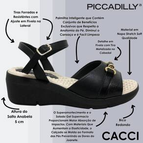 Elegante e despojada. A Sandália Anabela Médio é perfeita para o seu dia a dia. O acabamento confortável e o forro superfofinho tornam-a indispensável para quem precisa ficar horas de pé no trabalho. Calce Fácil e liberdade no dia a dia, não é preciso usar as mãos para colocá-lo, assim você terá mais segurança ao entrar e sair de casa. Já com o WIDE FIT, ela vai deixar os seus pés confortáveis e bem acomodados através de formas com medidas especiais. O superamortecimento e o solado gel supermacio proporcionam maior absorção de impactos. Com materiais que aumentam a elasticidade, o calçado se molda ao formato dos pés prevenindo as dores do joanete. Além disso, a palmilha é de fácil limpeza. O modelo é perfeito para criar um look fashion e urbano. Combine com uma calça cargo e uma camiseta oversized para uma produção cheia de atitude e estilo. PICCADILLY: onde a liberdade e o conforto se encontram em cada caminhada! Você sabia que todos os produtos da PICCADILLY têm o Calce Perfeito? É um conjunto de benefícios exclusivos que respeita a anatomia do pé, diminui o cansaço e permite que você vá mais longe nas suas jornadas diárias. Facilite seus dias com conforto e praticidade Modelos que você calça e tira sem precisar usar as mãos. Tenha mais conforto, praticidade e segurança ao entrar e sair de casa. O Calce Fácil descomplica sua rotina em todas as estações do ano. Prevenindo as dores do joanete Modelos pensados em mulheres que sofrem com dores no joanete. Com materiais que aumentam a elasticidade e não apertam ou esquentam a região, você terá mais conforto ao caminhar. WIDE FIT Um calçado que deixa os pés à vontade tem o poder de transformar a vida das mulheres. Os calçados com a característica WIDE FIT permitem que os pés fiquem bem acomodados e diminuem as dores causadas pelo Neuroma de Morton - inflamação de um nervo entre o terceiro e o quarto dedo menor, causada por compressão crônica.