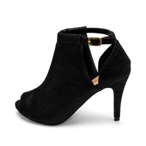 Sandália Ankle Boot Elegante Feminina Moda Casual Fechada Com Fivela Salto Fino Bico Redondo - 35 - Preto