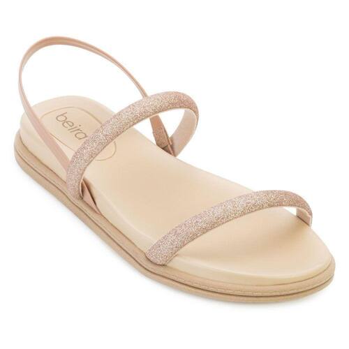 Nome: Sandália Beira Rio BR23-84881. Gênero: Feminino. Indicado para: Dia a dia. Estilo da Peça: Casual. Material Externo: Alternativo com tiras de glitter. Ajuste: Tira no calcanhar com detalhe em elástico, calce fácil. Palmilha: Anatômica e macia. Tipo de salto: Rasteiro. Solado: Borracha antiderrapante. Peso do Produto: 537 g (o peso varia de acordo com a numeração). Garantia do Fabricante: Contra defeito de fabricação. Origem: Nacional. Código Produto: 02430308. Marca: Beira Rio. Ean: 7890015759351