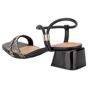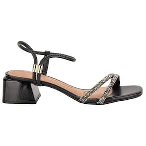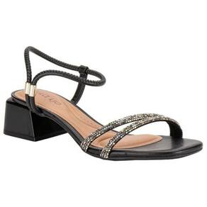 Sandália Beira Rio Casual Tiras Brilhantes Salto Bloco Baixo Feminina Preto 336644
