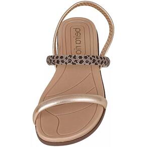Com suas tiras em strass, a sandália ganha um brilho sutil que atrai olhares e adiciona um elemento de sofisticação. Os strass são pequenos cristais que refletem a luz de maneira delicada, conferindo um brilho discreto e elegante ao calçado. Esses detalhes cintilantes nas tiras tornam a sandália versátil, adequada tanto para ocasiões casuais quanto para eventos um pouco mais formais.