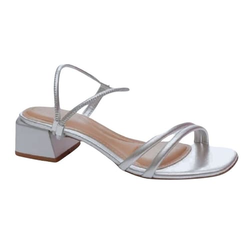 Sandália Beira Rio Salto Bloco Strass Feminina Prata 347628